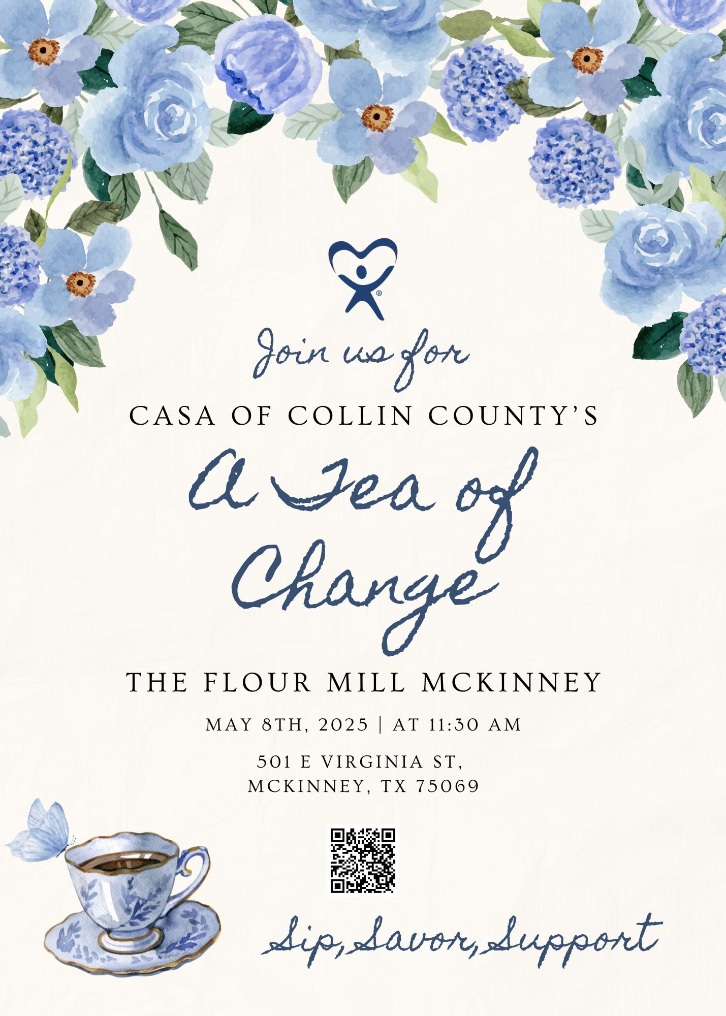 Join CASA of Collin County for A Tea of Change, proudly presented by SRS Raise the Roof Foundation. This elegant and inspiring event offers an afternoon of connection, empowerment, and purpose—all in support of vulnerable children in our community.