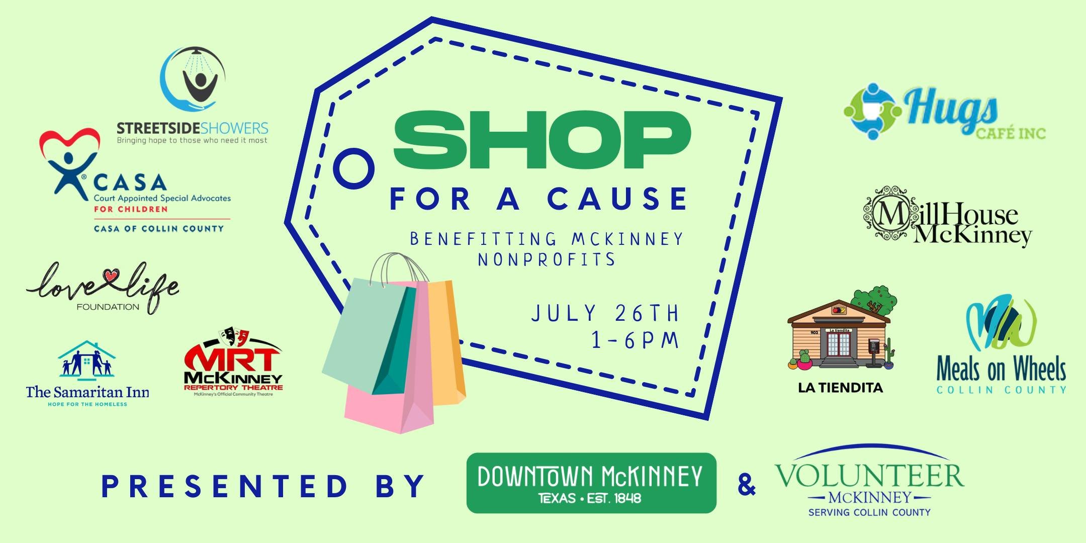 Volunteer McKinney is proud to partner with Downtown McKinney to present Shop for a Cause—a community-focused shopping event that directly supports 10 incredible local nonprofit organizations. Whether you're passionate about the arts, food security, youth support, or helping those in need, this event offers an easy and fun way to give back just by shopping!