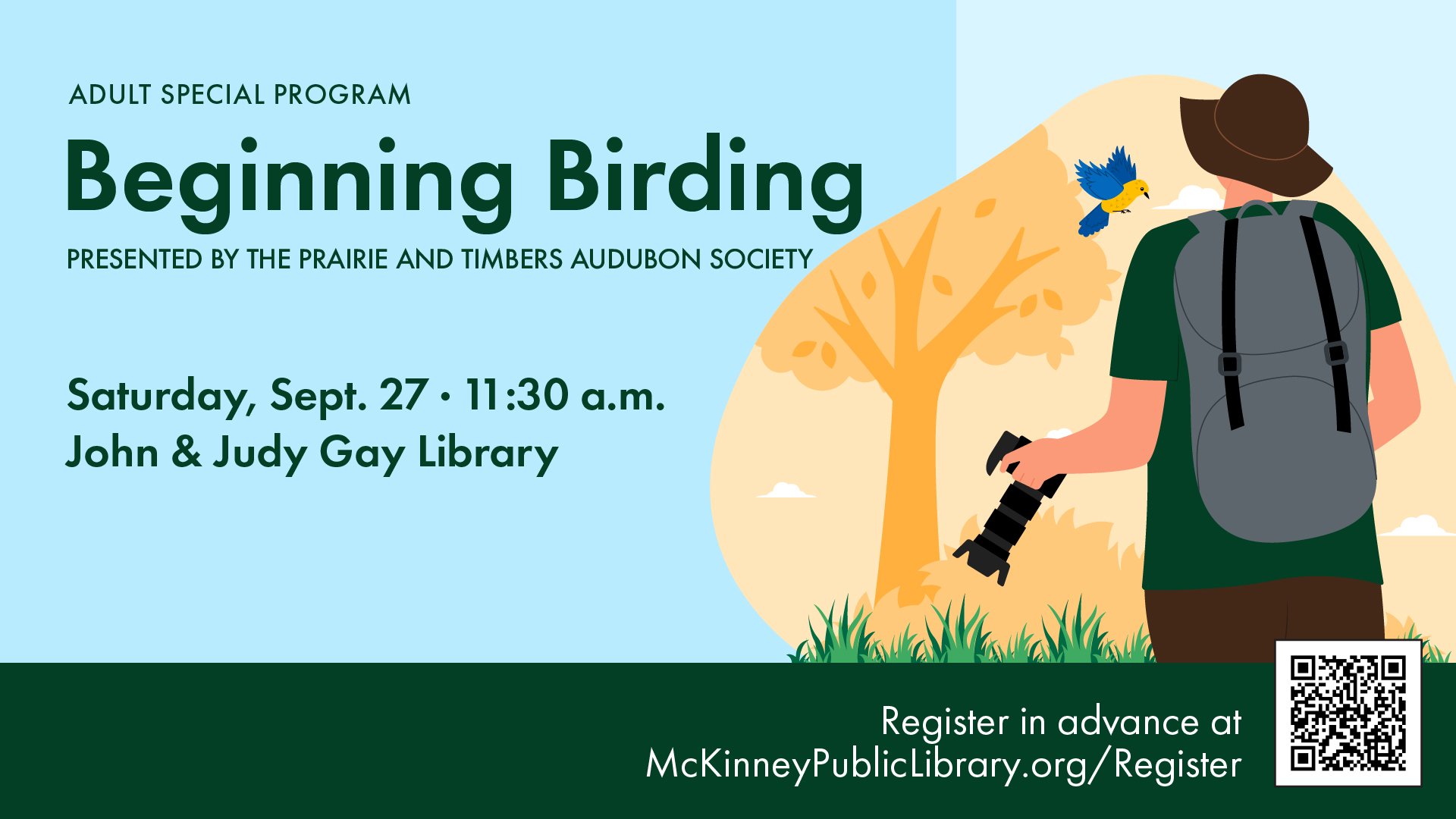 Curious about birding and don’t know where to start? Come learn the basics of bird identification and birding in your backyard. Discover the best birding locations, what to wear, how to attract birds to your own yard, and have fun!