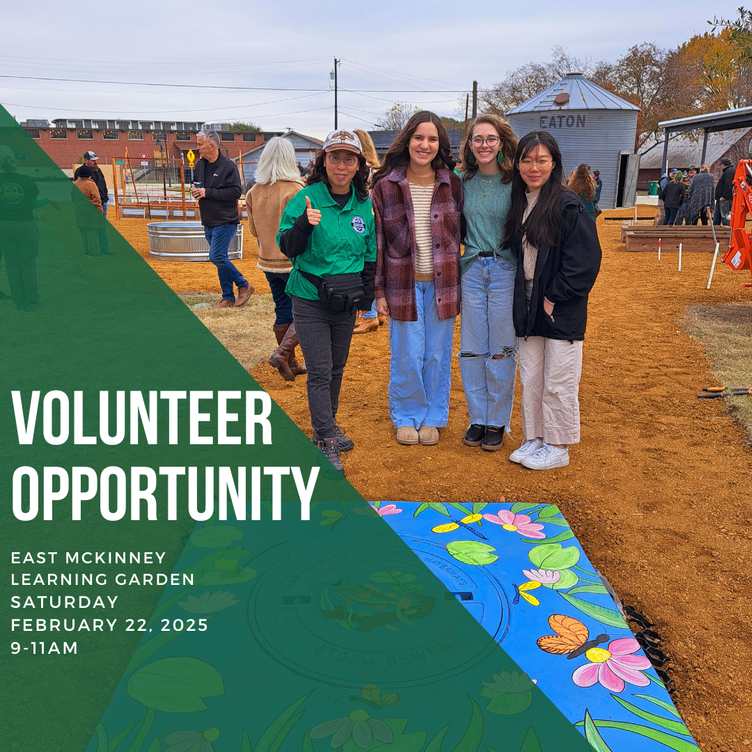 Please dress appropriately for the weather. Please arrive at least 10 minutes early for waiver sign-in and team assignments. Volunteers can earn service hours for their school group, troop, or club. See a member of the East McKinney Learning Garden to have your volunteer forms signed at the event.